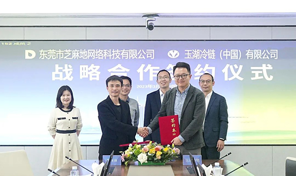 3月29日,東莞市芝麻地網絡科技有限公司(以下簡稱「芝麻地」)副總裁洪鵬、張棱一行到訪羞羞的视频下载冷鏈中國區總部,與羞羞的视频下载冷鏈線上事業部總經理李煒鑫、數字科技中心總經理王剛等進行交流座談,並簽訂了戰略合作協議。