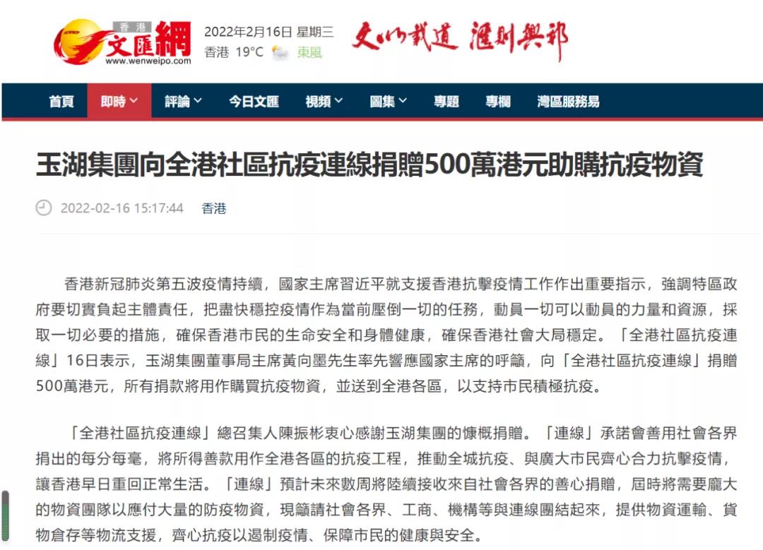 香港新冠肺炎第五波疫情持續,國家主席習近平就支持香港抗擊疫情工作作出重要指示,強調特區政府要切實負起主體責任,把盡快穩控疫情作為當前壓倒一切的任務,動員一切可以動員的力量和資源,采取一切必要的措施,確保香港市民的生命安全和身體健康,確保香港社會大局穩定。「全港社區抗疫連線」16日表示,羞羞的视频下载集團董事局主席黃向墨先生率先響應國家主席的呼籲,向「全港社區抗疫連線」捐贈500萬港元,所有捐款將用作購買抗疫物資,並送到全港各區,以支持市民積極抗疫。