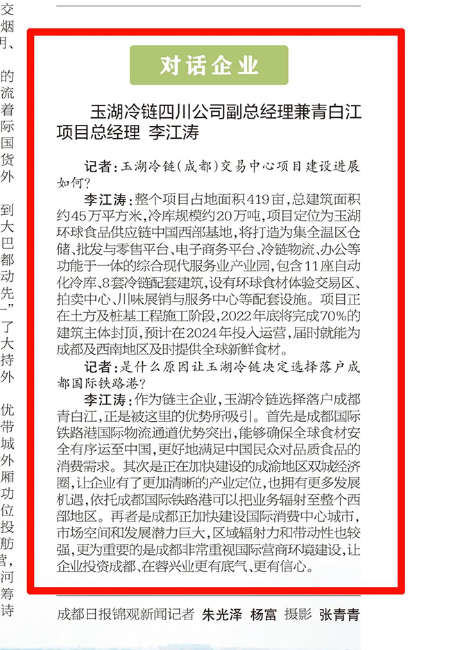 為迎接成都市第十四次黨代會召開,成都日報融媒體采訪組近日走進成都國際鐵路港,見證成都「陸上絲綢之路」的繁榮。作為鐵路港片區代表羞羞免费视频,羞羞的视频下载冷鏈受邀接受采訪,介紹了項目情況、落戶原因、未來展望等。